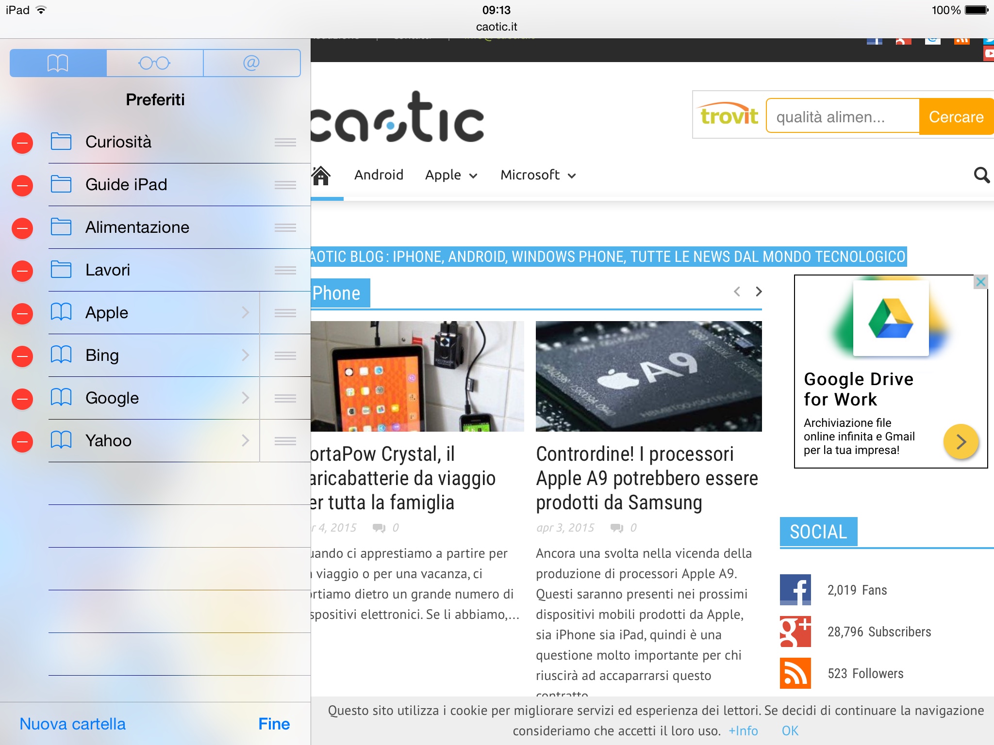 Per prima cosa, quindi, apriamo Safari su iPad. Se state leggendo questo articolo direttamente da iPad, utilizzate il tasto in alto, quello con la freccetta, per aggiungere la pagina ai segnalibri. In alternativa potete aggiungere qualsiasi pagina web, anche la home di Google, tanto è solo un’operazione provvisoria.